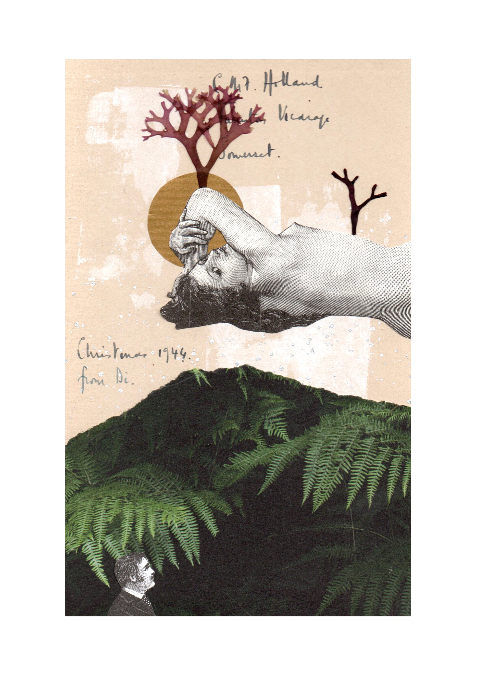 Collected imagery from books and magazines which was cut, collaged and arranged on a vintage book cover before adding pressed seaweed and photographing