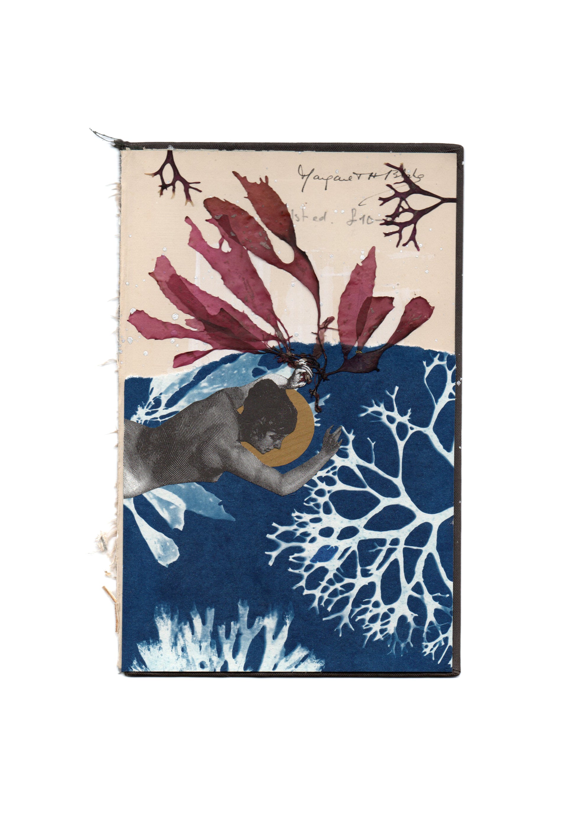 Collected imagery from books and magazines which was cut, collaged and arranged on a vintage book cover before adding pressed seaweed and photographing
