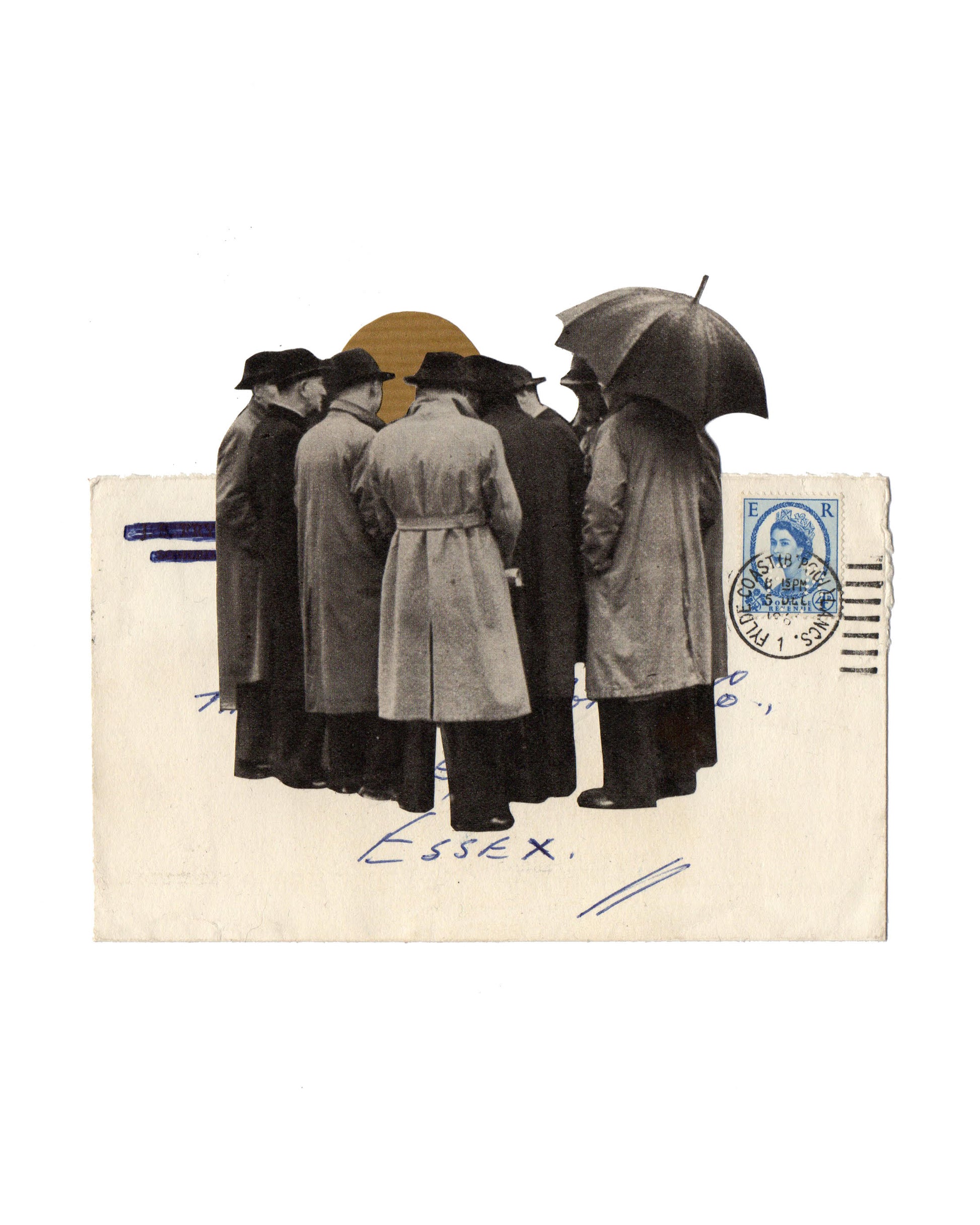 Collected imagery from books, vintage magazines and selected papers which were cut by hand and arranged in the studio on a vintage envelope before attaching the original collage to 240gsm fine art white card